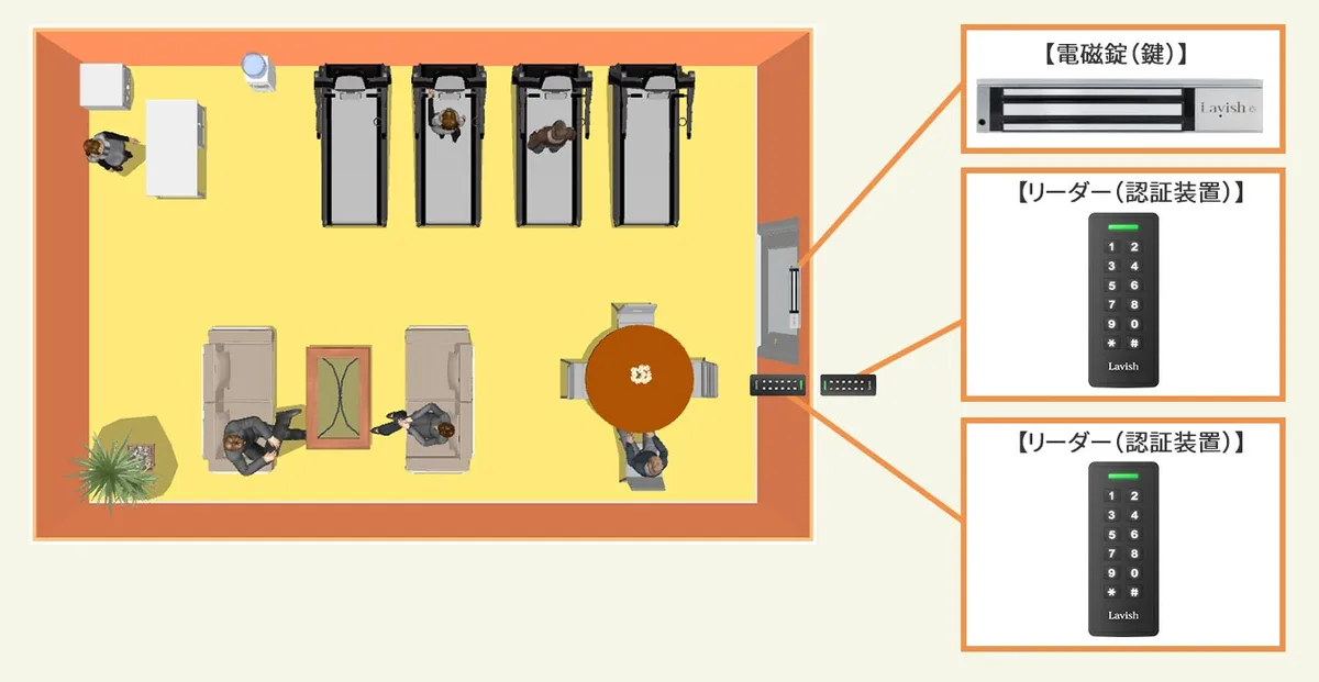 扉の外側にリーダー、内側に解錠ボタン